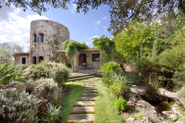 Das schmucke Landhäuschen ist im traditionellen Stil erbaut und bietet auf 120gm Wohnfläche Platz für 6 Personen. Inmitten einer idyllischen Landschaft, nur 4km von der Altstadt Pollencas entfernt, verbringen Sie hier einen komfortablen Urlaub und entspannen vom alltäglichen Stress. Das 6.000qm große Grundstück beinhaltet einen hübsch angelegten Garten mit mediterranen Pflanzen und farbenfroh blühenden Blumenbeeten. Über einen kleinen Pfad gelangen Sie vom Pool aus zum überdachten Grillplatz mit gemauertem Grill. Am gemütlichen Esstisch aus Teakholz finden 6 Personen ausreichend Platz. Einem geselligen Grillabend steht somit nichts mehr im Wege. Auf der mit Rasen bepflanzten Fläche rund um den 8m x 4m großen und 1,80m bis 1,10m tiefen Pool, können gemütliche Liegen aufgestellt werden. So genießen Sie bei schönem Wetter die mallorquinische Sonne in vollen Zügen. Direkt am Haus angebaut befindet sich eine mit Tisch und Stühlen ausgestattete überdachte Terrasse. Beenden Sie hier den Tag bei einem Gläschen Wein oder frühstücken am Morgen mit Blick auf die Garten- und Poollandschaft.
