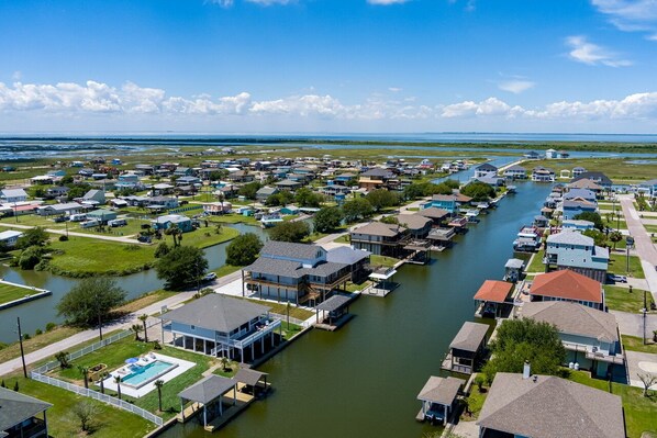 Dieses Ferienhaus befindet sich direkt am Wasser und liegt in der Gegend Crystal Beach, einem Stadtviertel von Port Bolivar. Galveston-Seemauer und Fort Travis Seashore Park zählen zu den Sehenswürdigkeiten der Region, während du hier die Schönheit der Natur bewundern kannst: Big Reef Nature Park und Crystal Beach. Beim Angeln und beim Baden finden Wasserratten in der Nähe genug Abenteuer rund ums kühle Nass. Zum Reiseführer für Port Bolivar