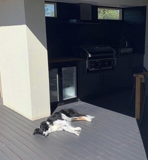 The property was very welcoming, We were traveling with our 2 dogs 1 large and 1 small the property was well fenced we could let the dogs out into the back garden and know they were safe. The inside is also good for the dogs with flooring that just needs to be vacumed and a light mop and all signs ot the dogs is gone. I think the is the best equipped of any of a number short term rental properties we have visited.