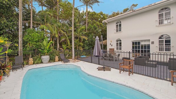 "Great house for large group in spectacular location close to beaches, shops, restaurants. Nice pool, good BBQ, secure yard for dogs. Recommended."