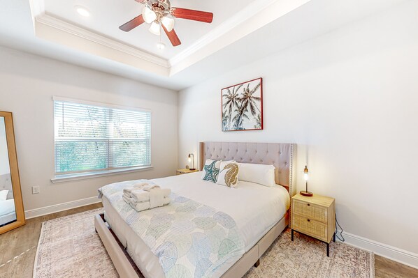 Two homes make for double the fun and comfort at this Windmark Beach retreat! The perfect choice for a shared getaway with friends or family, this vacation rental joins two neighboring homes into one epic group getaway. Each home boasts all-new (2022) construction and comes fully furnished with all the modern amenities and appliances including a gorgeous full kitchen, central air-conditioning, and free WiFi. In addition, there is a selection of bikes, helmets, beach chairs, sun shades, pool floats and a pickelball net with racquets included. Pleasing coastal decor helps to set the tone for your stay and younger guests will love the pirate and beach bungalow-themed bunk rooms. Sun-soaked leisure awaits at this sparkling on-site pool, and the beach 10 minutes away. The Windmark Beach Village features some fantastic food, drink, and shopping options so you don't have to travel far for local fare.