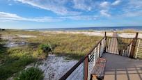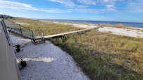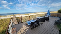 This charming house sits directly on the beach with its own private boardwalk. The Deck has new patio furniture, beautiful views and there are no neighbors on either side of the house so it’s more private.