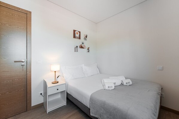 The bedroom offers a comfortable double bed, tasteful modern decor, and plenty of storage for a hassle-free stay. The bathroom includes fresh towels and complimentary toiletries to start your day right, and a washing machine adds extra convenience during longer stays.