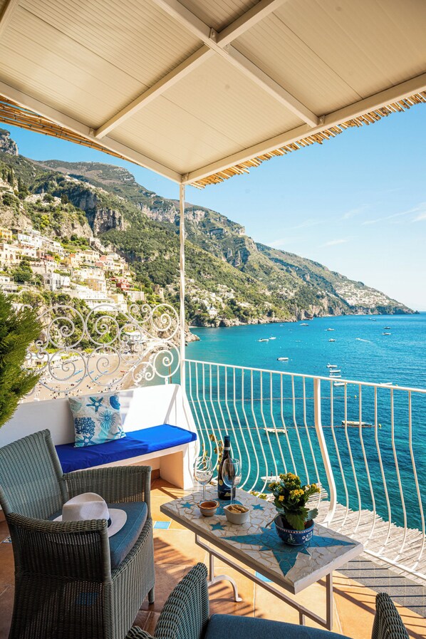 What makes our apartment so unique is the spectacular view of the sea and coastline from the private terrace. Being on the terrace is as if you are in the sea and could pretty much jump in. Being on the terrace you'll not want to miss having your breakfast, dinners and aperitivi with the view you'll have of the sun rising and the spectacular sunsets. We are very centrally located, only a 2-minute walk away from the beach, boardwalk, restaurants and shops and can avoid the crowds of the center.
