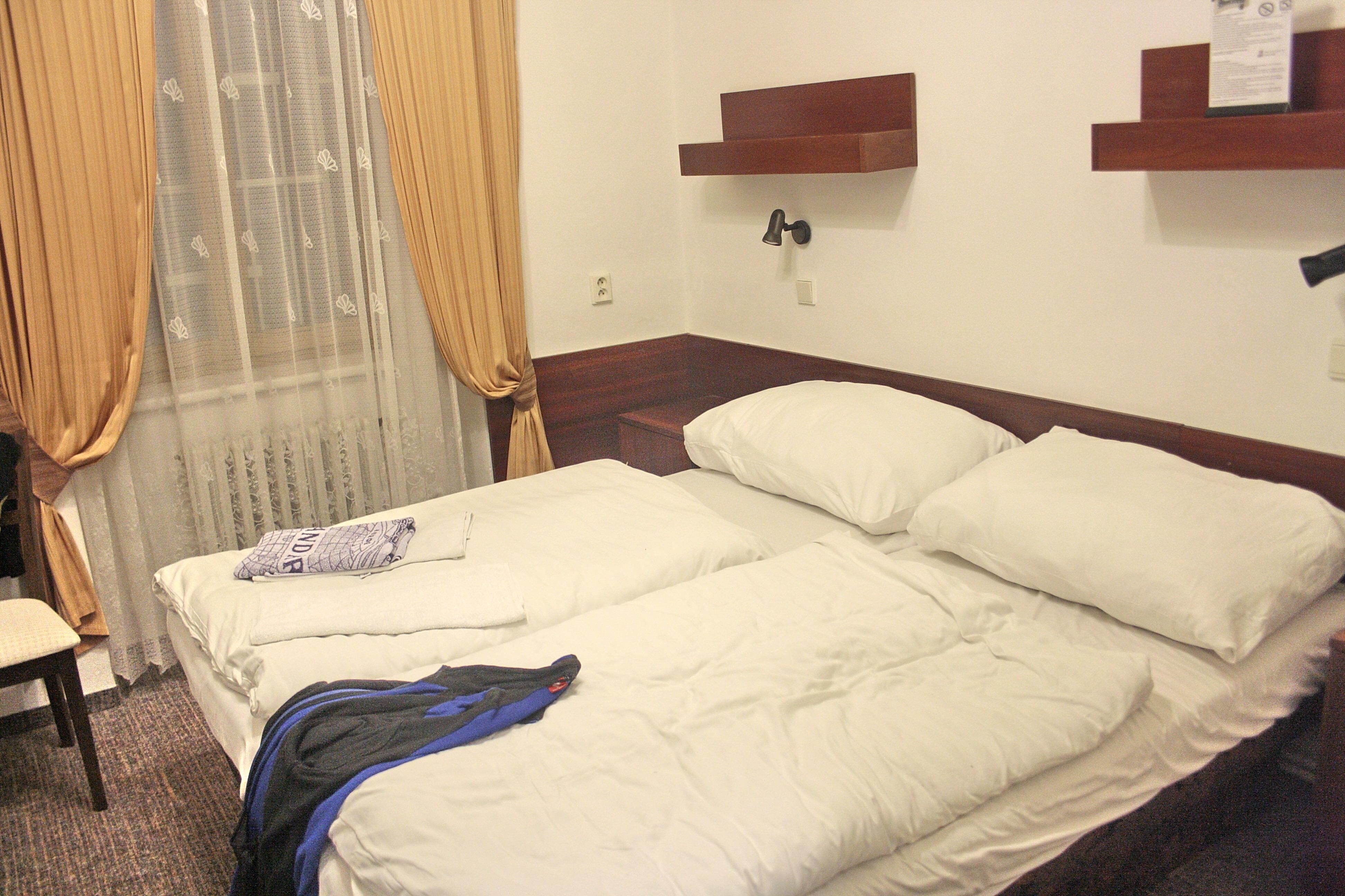 Wir kamen um Prag zu sehen und zu erkunden - nicht um im Hotelzimmer Drinks zu schlürfen! Unser Zimmer (20) war im Souterrain zum Hinterhof, etwas dunkel, aber tiptop gepflegt und sauber. Die Austattung ist zweckmässig (D'Bett, 2 Sessel, kl. Tisch, Minibar und Wandschrank mit Safe). Das Badezimmer (Dusche, Toilette, Lavabo) ist sauber und rein. Das Zimmer wird täglich gereinigt, gelüftet - und wenn es sehr heiss in Prag ist (36/37°C) wird die Klimaanlage im Voraus eingestellt. Einen kleinen Makel gibt es noch zu erwähnen. Im Zeitalter der Handys braucht es Steckdosen und davon hat es leider nur 1 im ganzen Zimmer (zu not tuts auch die Steckdose im Bad). Das Personal ist äussert zuvorkommend und hilfsbereit. Auch bei Fragen zu Prag bekommt man eine korrekte Antwort/Hilfestellung. Das Hotel ist - wen wunderts - altes Gemäuer. Aber es wird gepflegt und fortlaufend renoviert bzw. Instand gehalten. Ich kann dieses Hotel mit gutem Gewissen weiterempfehlen. Die Lage ist etwas "Off Down Town" und doch sehr zentral gelegen. Das Frühstücksbuffet ist angemessen und entspricht m.E. dem üblichen Standard.