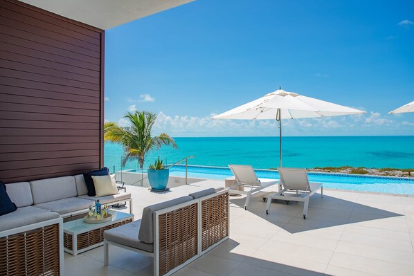 Each of the four upper bedrooms feature access to seamless indoor/outdoor living on our expansive 2,000 square foot terrace. Perfect for sunbathing, reading a book or enjoying a seafood fare on, Tip of the Tail’s terrace is lined in glass and exudes an atmosphere that marries Miami with the Tropics.