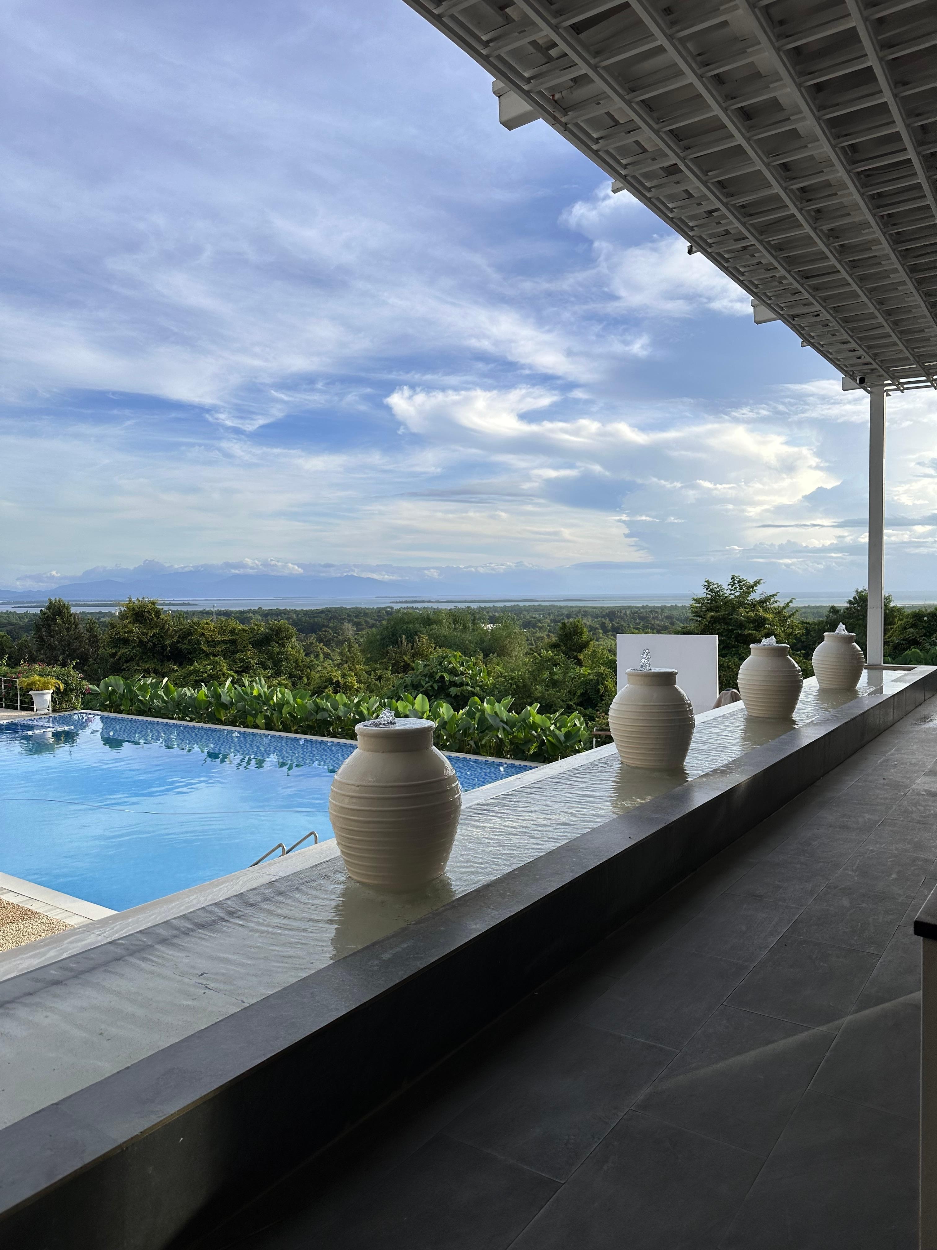 Auf Hügeln gelegenes schönes Hotel mit Meerblick