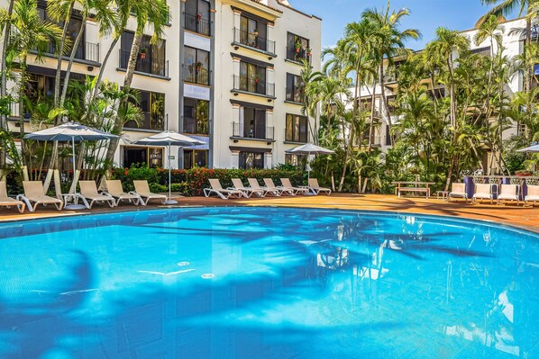 Hat Cozy apartment w/ balcony, pool views, free Wifi einen Pool?