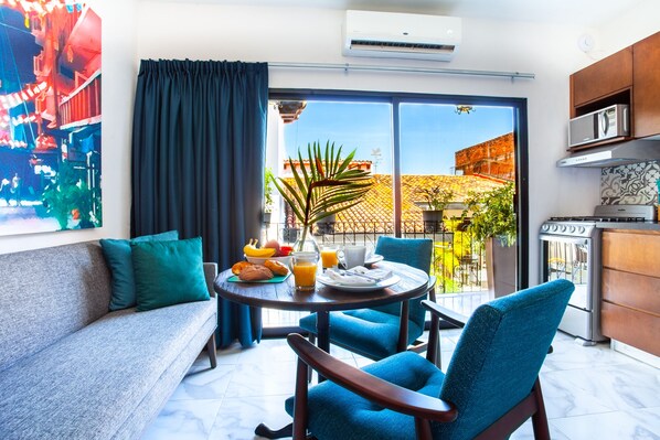 PVRPV proudly presents Villa Sorpresa Unit 6, a completely remodeled studio. Nestled just a few streets up from Olas Altas and around the corner Basillio Badillo in Old Town of Puerto Vallarta. A short 10-minute walk from the famous Playa Los Muertos beach. Short stroll to all of bars, restaurants, art galleries, coffee shops, local shops and nightlife that the south side of Vallarta has to offer.