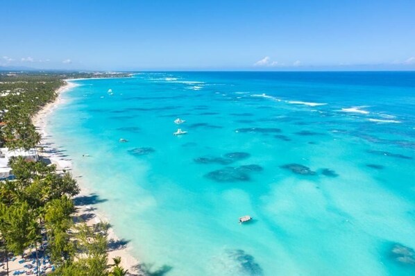 Getting to PLAYA TURQUESA is very simple, once you arrive at the Punta Cana International Airport, the airport has taxi drivers certified by the airport itself to transport tourists, Los Corales is less than 20 minutes from the airport. On the way to the residential we recommend going to a Supermarket and buying provisions for the following days of your stay. At Gale Vacation Rentals we can book both the transfer in advance (we have bilingual drivers who can wait for you inside the airport with a sign) or help with supermarket purchases, so that when you arrive, you can be calm and enjoy your vacation 100%.
