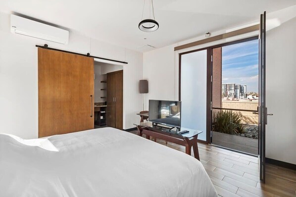 + Este Loft es totalmente nuevo, cuenta con una cama King Size, aire acondicionado, internet muy rápido de fibra óptica, con cocina equipada, un baño completo muy amplio y closet , Cuenta con una pequeña terraza muy cómoda, escritorio y silla de trabajo, la televisión es Smart TV con muy buena vista a toda la ciudad de Querétaro.
