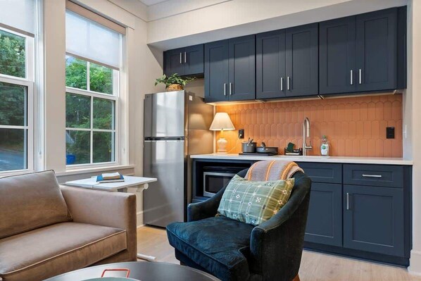 - Kitchenette: A kitchenette with modern appliances, cookware, and utensils, ready for all your culinary adventures.