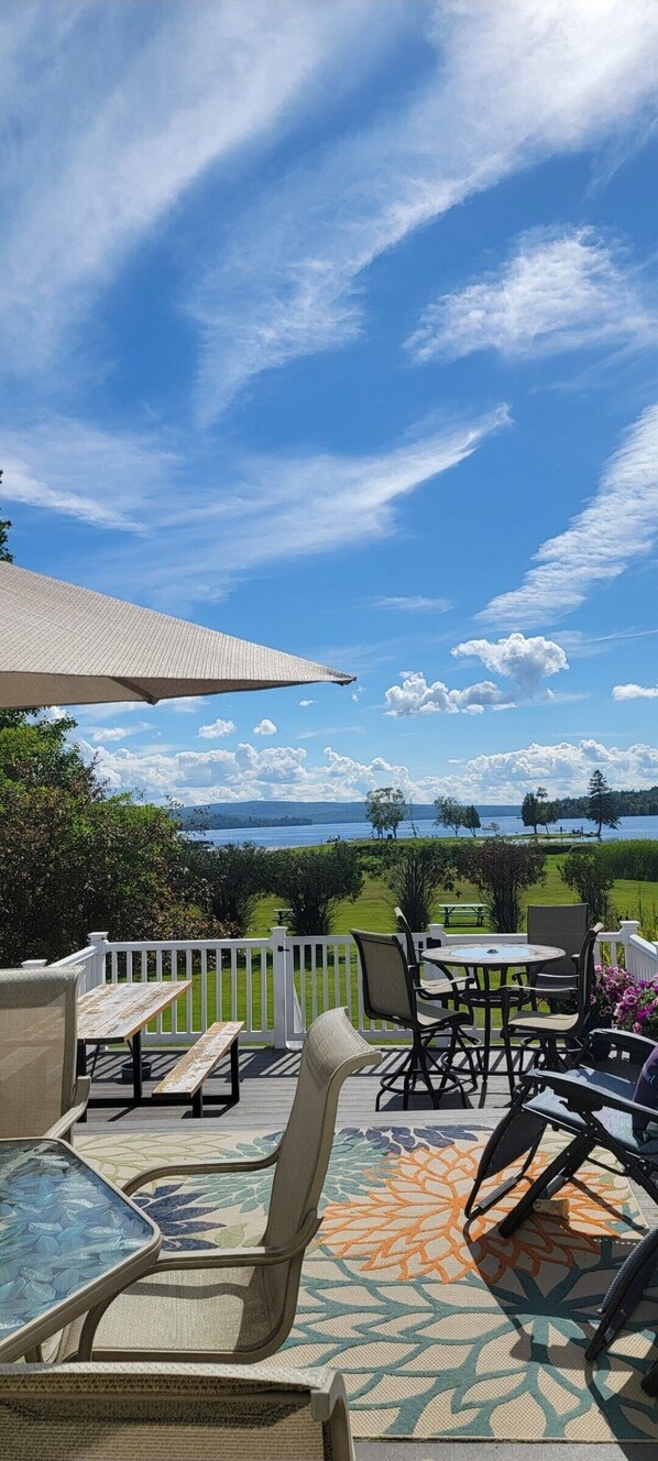 Dieses Ferienhaus am See bietet eine Küche und einen Patio
