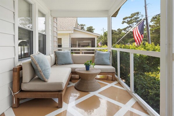 • Screened porch with dining table