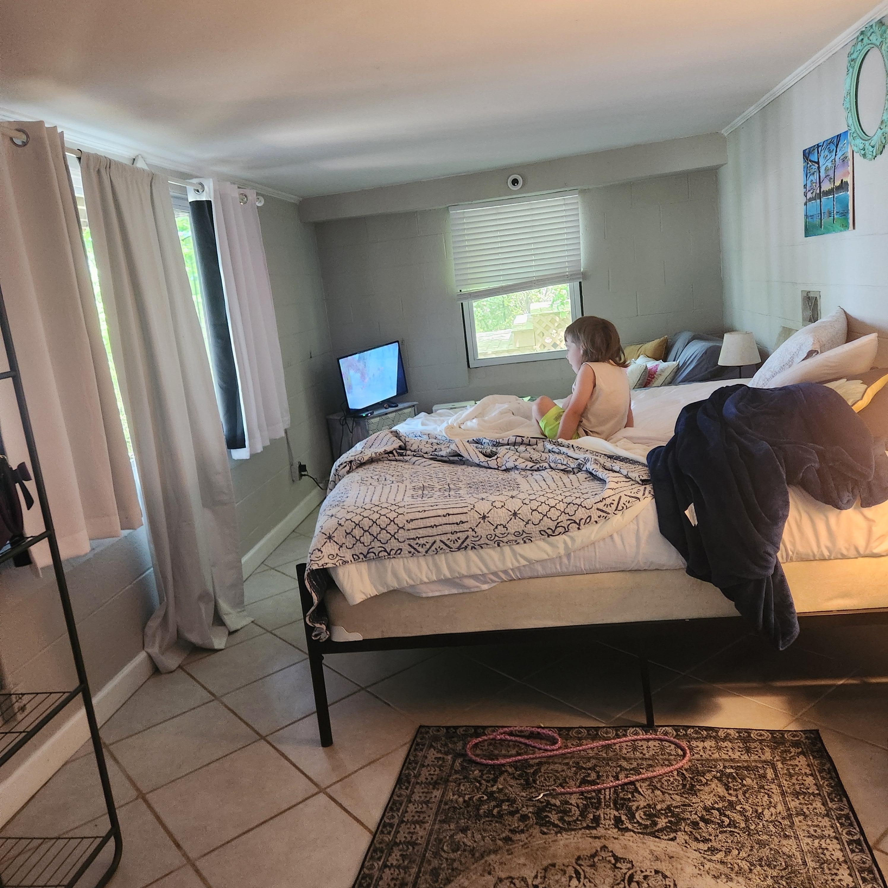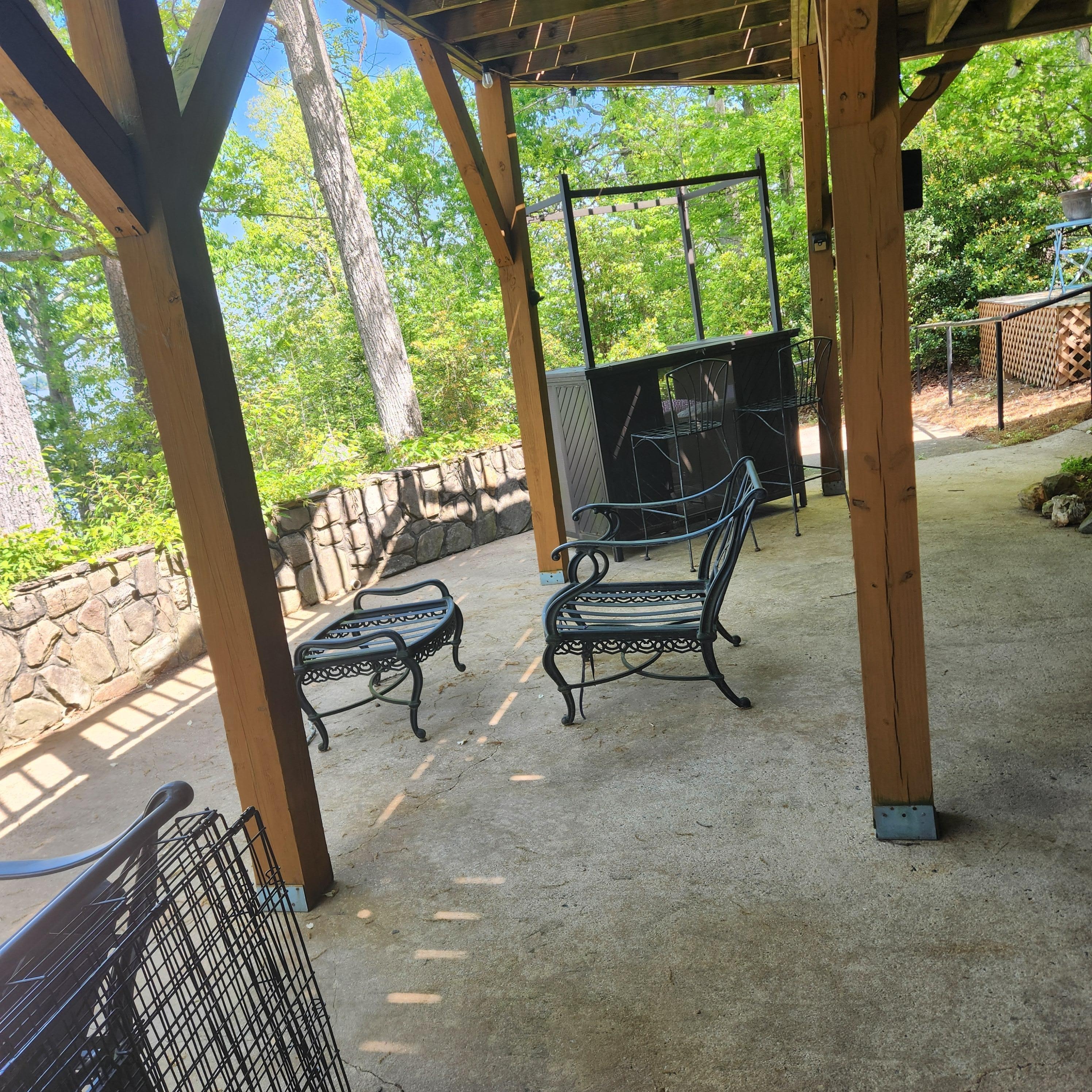 This place has so much potential, but sorry to say it falls short- very short! Our biggest problem with this rental was the overall lack of cleanliness and the misrepresentation of the unit. The pictures and the listed description absolutely do not truthfully represent the unit. It looked abandoned. Cobwebs everywhere, the outside cushions were all damp, moldy, and smelly. Tiki bar full of junk that was damp, moldy and full of cobwebs. The pathway lights down to the dock are ripped out and thrown in a pile in the yard. Firewood by fire pit uncovered, wet and unusable. The AC in the unit is a very small portable AC that leaked water everywhere. The house AC can be turned on, but you will not have access. We had to buy a fan. The bed is propped up with a book. The refrigerator was filthy and top covered in dead bugs. Cheap charcoal grill, but that didn't matter because the "dishes & utensils" consisted of 2 cups,1 glass, 1 fork and wood coffee stirrers! There's no table in unit or on patio where you could sit and eat. Wanted to grill some burgers-that wasn't going to happen Pictures show a drip coffee maker on a coffee bar- that's gone. There is small Keurig. John offered refund, but held money until I agreed to not leave negative review. This is a honest true review. Unfortunately we had a negative experience. The view is amazing though, such a shame that a little TLC isn't given. The condition of this rental does not match the price that it is being rented for.