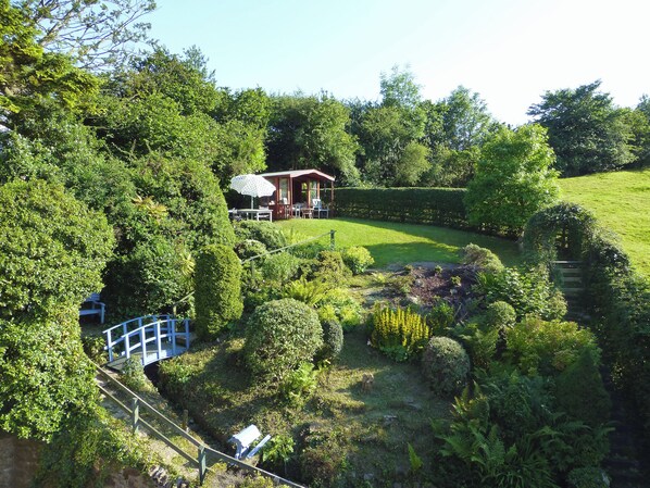 - Eingezäunte angelegte beleuchtete Gärten, Terrassen, Gehwege, Gartenhaus, Möbel