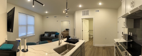 We are a group of nine 1-bedroom apartments inside a newly built thirty 1-bedroom apartment building (August, 2024). The nine units are designated as tourist homes licensed by the city of Richmond. It's off I-64 exit 193a, in a quiet and upcoming new development residential area. A short walk to the newly built Bon Secour Hospital Complex, it is less than 2 miles drive to the Richmond downtown area, home to many museums, events and conferences, and of course, popular restaurants and bars.