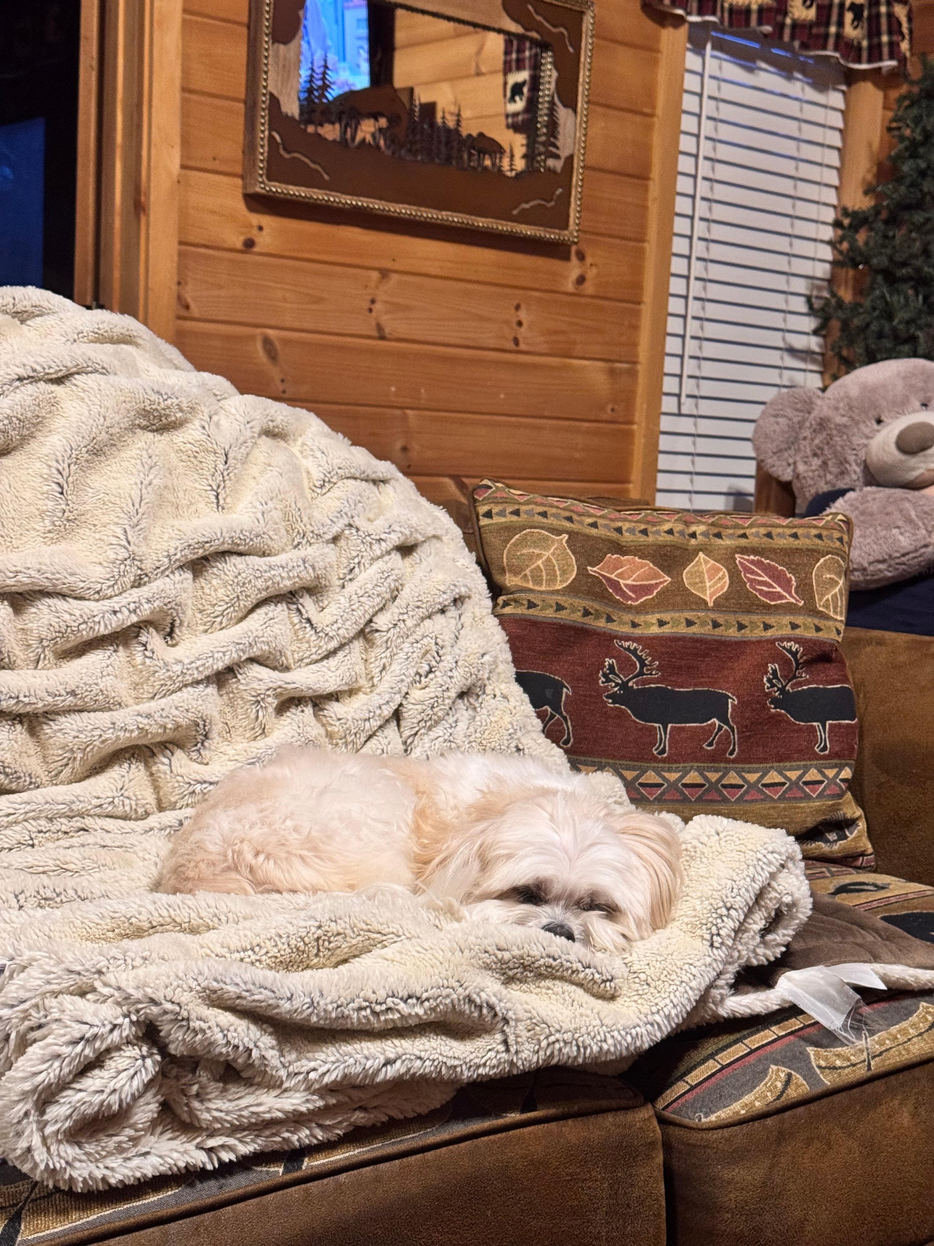 Perfekt für Treffen mit Familie und Freunden. Der große Raum verfügt über einen Steinkamin, einen Breitbildfernseher und ein Schlafsofa, das jedem einen komfortablen Ort zum Besuchen und Schlafen bietet. Die Küche ist komplett ausgestattet, egal ob Sie einen schnellen Snack oder ein Gourmet-Abendessen zubereiten. Genießen Sie die Gewölbedecken und riechen Sie die Zeder.