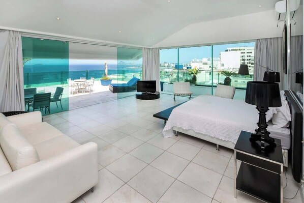 Enjoy this luxurious penthouse with its 5 suites, its gigantic dining room, its bright living room, its TV area, its fully equipped kitchen, and, above all, the largest private oceanfront pool with breathtaking views of Christ the Redeemer, Sugarloaf Mountain, the Two Brothers, and the most famous beach in the world!
