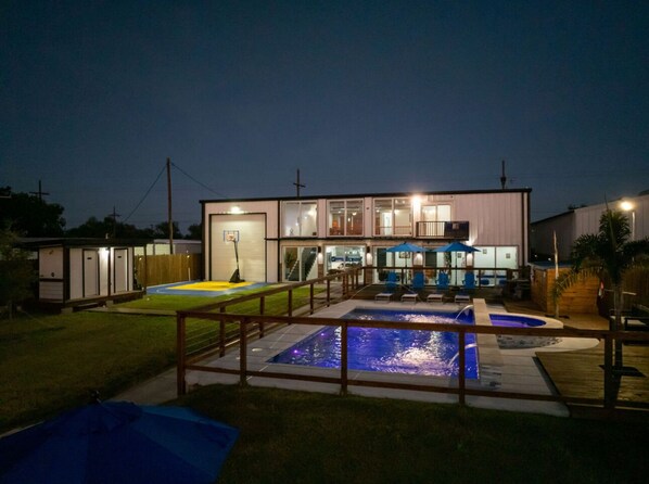 Welcome to The River Glass House, a luxury waterfront retreat designed for unforgettable family gatherings. This spacious 4-bedroom home comfortably accommodates up to 20 guests (maximum occupancy strictly enforced), offering the perfect setting for large families to relax, reconnect, and enjoy the beauty of Arroyo City. From the moment you arrive, you’ll experience open-concept living, natural light, and stunning riverfront views throughout the home. Large Glass Windows overlooking the River. What Makes This Property Special: * Private fishing pier with lights for day & night fishing * Resort-style pool + hot tub * Basketball court by the water * Large gourmet kitchen fully stocked for big groups * Oversized 20-person dining table * Game room + multiple gathering spaces * Outdoor TV + fire pit area. Sleeping Arrangements (Perfect for Large Families): * Mix of king, queen, bunk beds, and additional sleeping spaces * Upstairs bunk room ideal for kids, teens, or group sleeping * Designed to comfortably host large families sharing together (Full detailed layout provided after booking to ensure proper planning.) Important – Please Read Before Booking: * Maximum occupancy: 20 guests total (including visitors) * No parties or events allowed * No pets allowed (strict policy) * No smoking inside the home * Outdoor cameras are in place for safety and occupancy compliance. Booking Details: * 2-night minimum stay * Security deposit required * Primary renter must be 25+ * ID and rental agreement required. Why Guests Love It Here: Families choose The River Glass House for its space, privacy, and unique waterfront experience. It’s the perfect place to slow down, fish, swim, and create lasting memories together.