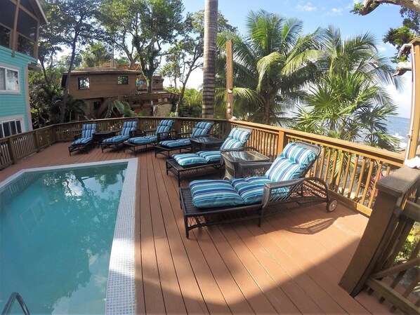 Die Gäste werden einen unvergesslichen Urlaub in diesem frisch renovierten, komplett eingerichteten Haus mit 4 Schlafzimmern und 4 Bädern am Strand verbringen. Jedes der beiden Schlafzimmer im Erdgeschoss verfügt über Queensize-Betten und die beiden Schlafzimmer im Erdgeschoss sind mit Queensize- und Einzelbetten ausgestattet und bieten bequemen Schlafmöglichkeiten für bis zu 10 Personen. Jedes Schlafzimmer hat ein angeschlossenes Badezimmer, ideal für mehrere Paare, die zusammen reisen und dennoch Privatsphäre wünschen. Das geräumige, offene Wohnzimmer ist ideal für große Gruppen und verfügt über zwei Sofas, einen Esstisch und ist zur Küche hin offen. Die Küche ist neu mit Granit und Küchengeräten aus Edelstahl umgebaut. Die Hauptebene in Veranda abgeschirmt bietet einen fantastischen Blick auf den Strand und die privaten Pools. Diese abgeschirmte Veranda enthält einen Bartresen, einen Grill und Sitzgelegenheiten für 8 Personen. Auf der unteren Ebene befindet sich ein Spielzimmer mit einem Airhockey- und einem Kickertisch. Nur wenige Schritte vom Haus entfernt können Sie am Strand wunderbar schnorcheln und Kajak fahren. Dieses Haus ist der perfekte Ort zum Schnorcheln und Tauchen. Unser Hausverwalter hilft Ihnen gerne bei der Planung und Organisation von Schnorchel-, Angel- und Tauchabenteuern. Wir haben Vereinbarungen mit einem lokalen Tauchanbieter, der personalisierte Dienstleistungen anbietet und Sie direkt am Dock abholt und absetzt. Sie konzentrieren sich auf kleine / private Gruppen mit einer Vielzahl von Dienstleistungen wie Inseltouren, Schnorcheln, Tauchen und Angeln!