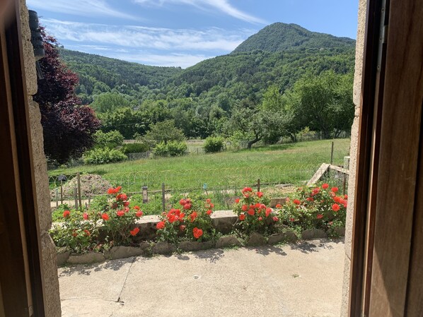 La Maison est à flanc de colline à 200m de la Loire. Aucun problème de voisinage n'est à noter, le hameau compte 7 habitants et toutes les maisons sont à bonne distance. La plus proche est celle du propriétaire, au dessus. Dans les cas peu fréquents où il s'y rend, nous avons eu sa totale discrétion et nous sommes sentis libres comme chez nous.