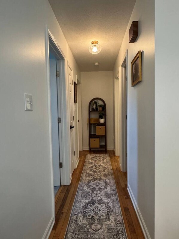 The living room is tastefully decorated with all-new furnishings and plenty of seating for gathering or streaming. For those who need to balance work with play, we offer high-speed internet and two designated workspaces — one in the master bedroom and another in the living area.