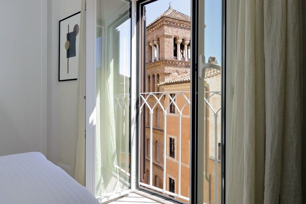 After a day of exploration, retreat to the Sonata apartment, where history seamlessly intertwines with contemporary design. The living room is a work of art, with its refined décor and views overlooking a charming terrace. As Rome's Mediterranean climate envelops you, the terrace becomes your outdoor sanctuary, inviting you to unwind and enjoy the mild weather.