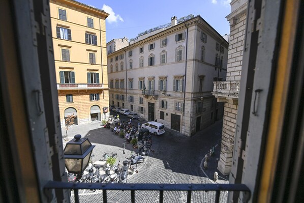 A lovely flat in a great location - you open your window right above the piazza, which has wonderful restaurants and shops. A second floor flat with a narrow spiral staircase, so not a great idea for anyone with mobility issues.