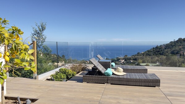 Außenbereich: - Infinity-Pool (mit atemberaubendem Blick auf das Meer). - Möglichkeit, den Pool gegen Aufpreis zu beheizen (150€ pro Woche). - Zweite, sehr gut ausgestattete Außenküche. - Grill-Plancha, Rotisserie und Pizzaofen. - 2x3-Sitzer-Sofa im Freien - 1 Sessel und Couchtisch