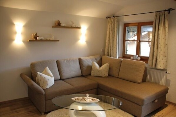 Ferienwohnung Platzhirsch 50qm, 1 Schlafzimmer, Wohnzimmer., Balkon, WLAN, 2 P.