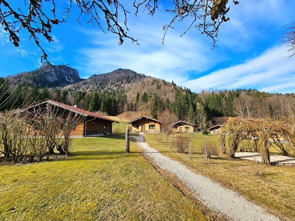Unsere Chalets vereinen kanadische Naturstamm-Bauweise mit alpenländischer Holzblockarchitektur zu einer einzigartigen Symbiose. Eingebettet in die traumhafte Naturkulisse Ruhpoldings im Chiemgau genießen Sie höchsten Wohnkomfort und absolute Privatsphäre - ob zu zweit, mit der Familie oder im großen Freundeskreis.
