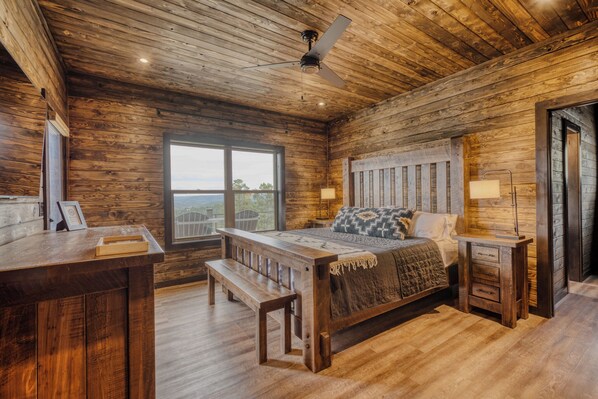 This 4-bedroom home in Ruidoso is perfect for your escape to relaxation. This welcoming property offers a serene atmosphere for guests to unwind. Enjoy the peaceful surroundings and take advantage of the many amenities. Take in the spectacular view from the back deck, where you may hear hummingbirds buzzing and elk bugling. Elk Ridge provides a peaceful atmosphere for family and friends. Elk Ridge was completed in 2025 and contains four spacious bedrooms with king beds, each with an attached full bathroom. One of the four bedrooms/bathrooms is upstairs and includes a full-over-full bunk bed. The game room contains a ping pong table, arcade console, shuffleboard, game table, and a giant TV. A half bath is centrally located near the game room. There is a small office for working or studying and a laundry room with washer/dryer, iron, ironing board, and drying rack. The kitchen is fully appointed and has plenty of room for cooking. The dining table seats eight, and four more seats are available around the kitchen bar. The living room is filled with custom leather furniture centered around the stone fireplace. The amazing view can be enjoyed from the seating and the hot tub on the deck. A gas grill is also available on the deck. The front porch has two gliders, and the parking area is paved. There are curtains now hanging in all bedrooms, primary bath, game room, living room, and dining area. Any green trees shown outside are no longer green due to the South Fork Fire in the summer of 2024. This home was in the path of the South Fork Fire and miraculously survived. Trees will be removed, and replanting will occur over the next few months.