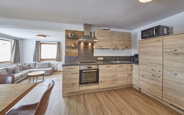 Dieses Apartment am Fluss in Saalbach-Hinterglemm bietet eine Küche