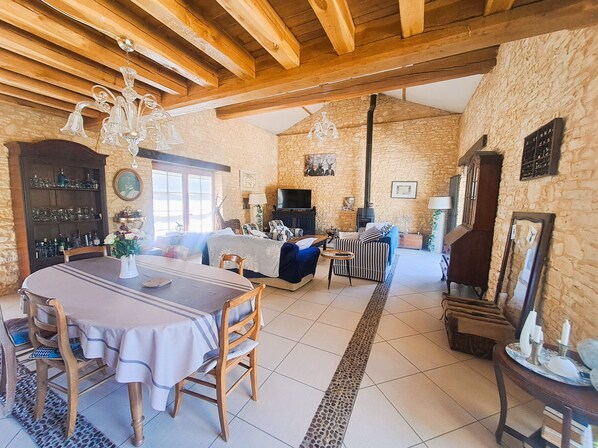 In the countryside, spacious house with large terrace, swimming pool and garden