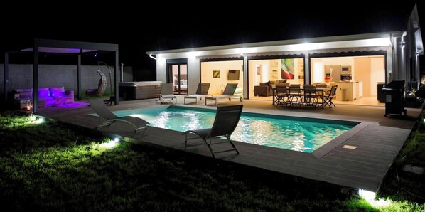 Pool: ja, wunderschöner Pool von ca. 8mx4m für 1,60m Tiefe mit Sonnenliegen und Sicherheitsalarm für Kinder. Familien-Whirlpool für 4 Personen.