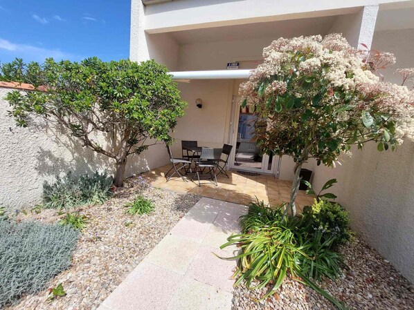 - Einstöckige Wohnung - Kapazität: 2 bis 4 Personen - Ein Schlafzimmer mit einem 140x190 Bett - Wohnzimmer mit Schlafsofa - Ausgestattete Küche: Mikrowelle, klassische Kaffeemaschine, Top-Kühlschrank, kleiner Geschirrspüler, Waschmaschine. - Private Terrasse - Möglichkeit zur Mitnahme von Fahrrädern - Privatparkplatz