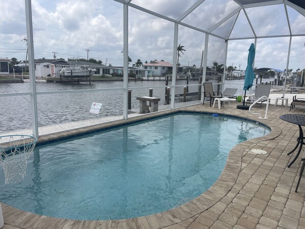 The highlight of this vacation rental is the brand new, caged, heated, salt-water pool. Take a refreshing swim or simply unwind by the poolside, soaking up the warm Florida sunshine. Additionally, the 10,000 lb. lift ensures convenient access for your boating adventures.