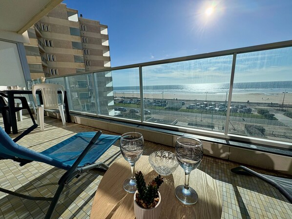 Fläche: 30 m 2 - Wohnzimmer/Aufenthaltsraum: - Sitzecke mit Schlafcouch für 2 Personen - Flachbild-TV - Esstisch mit Stühlen - Grosses Erkerfenster auf Balkon - Voll ausgestattete Küche: Gasherd - Elektroofen Kühlschrank/Gefrierschrank - Dunstabzugshaube - Mikrowelle - Schlafnische/-ecke: 2 Etagenbetten -grosser Abstellraum - Badezimmer - Waschtisch - Badewanne - Handtuchtrockner - Separates WC - 1 großer Balkon (12m2) : kleiner Balkontisch und Stühle mit Meerblick