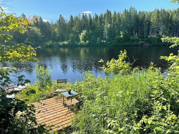 Dieses Ferienhaus am Fluss bietet eine Küche und einen Balkon