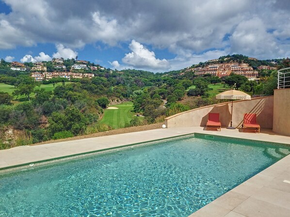Come and relax around the salt-filtered swimming pool offering an open view of the Sainte-Maxime golf course.