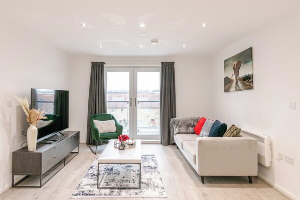 Living Room: Relax in the spacious and cozy living room, featuring a comfortable seating area where you can unwind after a day of exploring. Enjoy your favorite shows on the large flat-screen TV, which comes with Sky TV, Netflix, and Amazon Prime for endless entertainment options.
