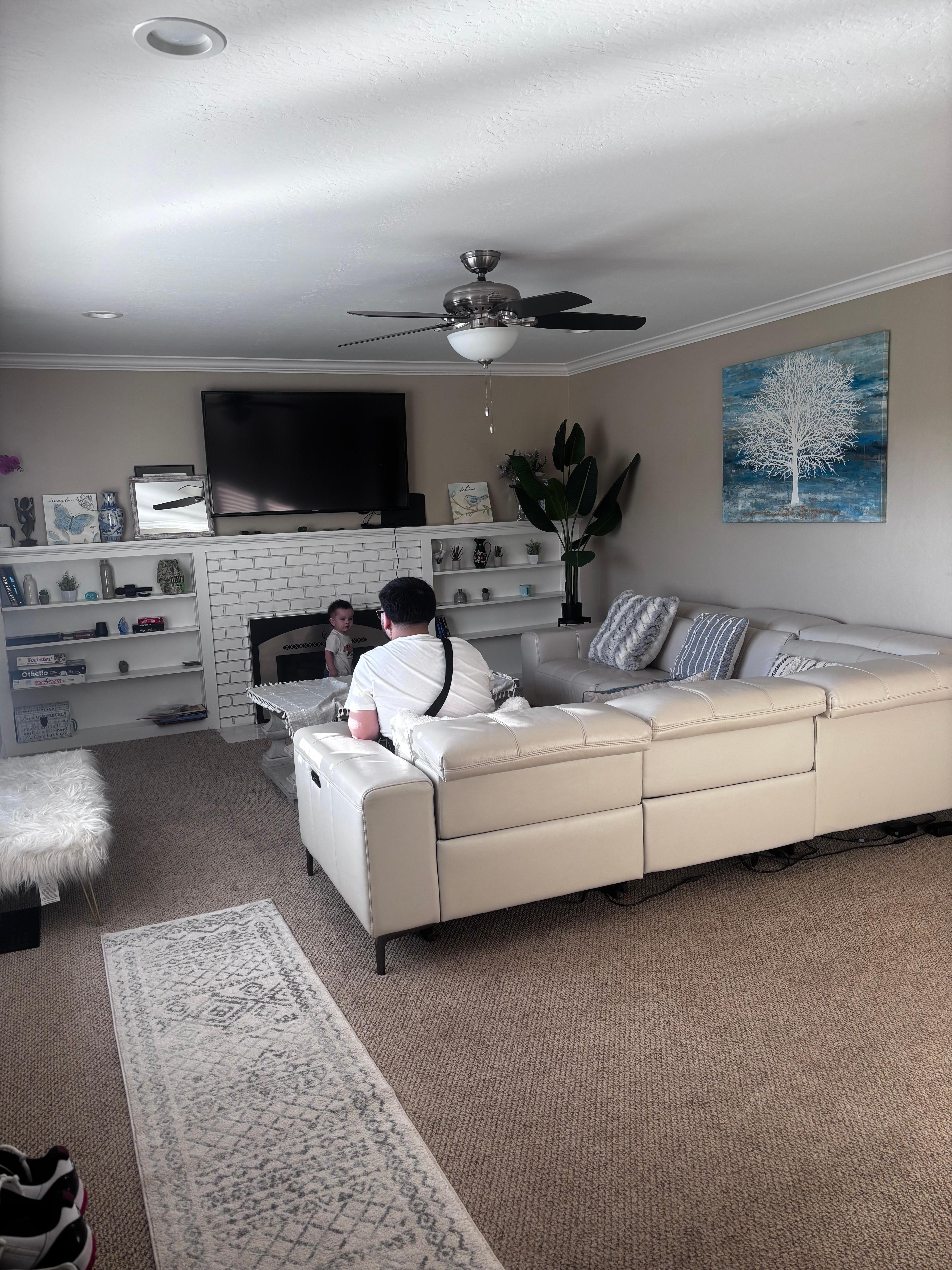 Cozy living room with leather couches. Roku Steaming so you can sign into your favorite platforms like Youtube, Netflix, Amazon prime etc ...