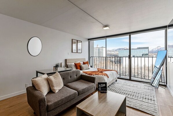 Unwind in the brand new luxury studio apt Downtown, 3 min from the Delta Arena.