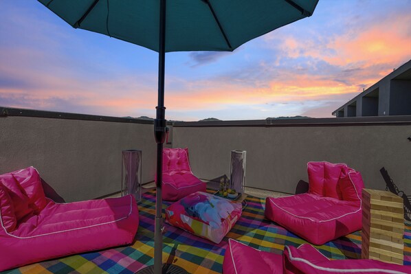Private rooftop deck with mountain and city views—ideal for sunset lounging or morning coffee