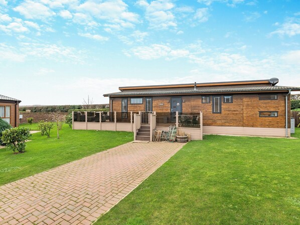 Welcome to Lobster Lodge, a spacious, bright, and welcoming retreat located within the peaceful gated holiday park of The Pines in the idyllic village of Runswick Bay.. 4 steps to entrance.