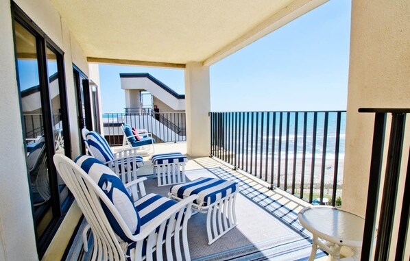 Summer Winds B-601 is a 3-bedroom, 2-bath Penthouse Oceanfront condo. The penthouse suite is a private key access floor giving you lots of privacy while on vacation! RELAX and take in breathtaking views of the Atlantic Ocean from the covered and uncovered oceanfront balcony. Master bedroom #1 has a King Bed with a Private Bath, Flat Screen TV, and BluRay Player. Bedroom #2 has a King Bed with a shared Bath and a TV. Bedroom #3 has a Queen Bed with a shared bath and a TV. Full Kitchen with stainless steel appliances including a microwave, dishwasher, refrigerator, and stand-alone ice maker. The spacious Living Room has a Color Cable TV and BluRay DVD Player.