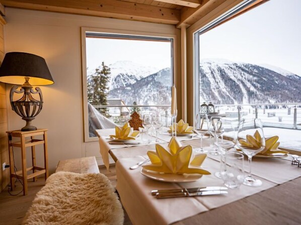"Chesa Crusch 7", 3-Zimmer-Dachterrassenwohnung 100 m2 auf 2 Stockwerken. Geräumig und hell, modern und stilvoll eingerichtet: Wohn-/Esszimmer mit offenem Kamin (nur Deko), TV und Radio. Grosse, offene Küche (Backofen, Geschirrspüler, 4 Glaskeramikplatten, Toaster, Tiefkühler, elektrische Kaffeemaschine, Kapseln für die Kaffeemaschine (Nespresso) extra). Sep. WC. Heizung. Unteres Geschoss: 1 Zimmer mit 1 Doppelbett (2 x 90 cm, Länge 190 cm). 1 Zimmer mit 1 Doppelbett (2 x 85 cm, Länge 190 cm). Bad/Bidet/WC, Dusche/Bidet/WC. Holzdielenboden. Grosse Terrasse 40 m2, Südlage. Terrassenmöbel. Herrliche Panoramasicht auf die Berge und die Ortschaft. Zur Verfügung: Haartrockner. Internet (Wireless LAN, gratis). Garage Nr. 14 auf dem Grundstück (1 Auto), Höhe 235 cm, Breite 235 cm. Bitte beachten: für Kleinkinder nicht geeignet. Nichtraucher-Unterkunft.