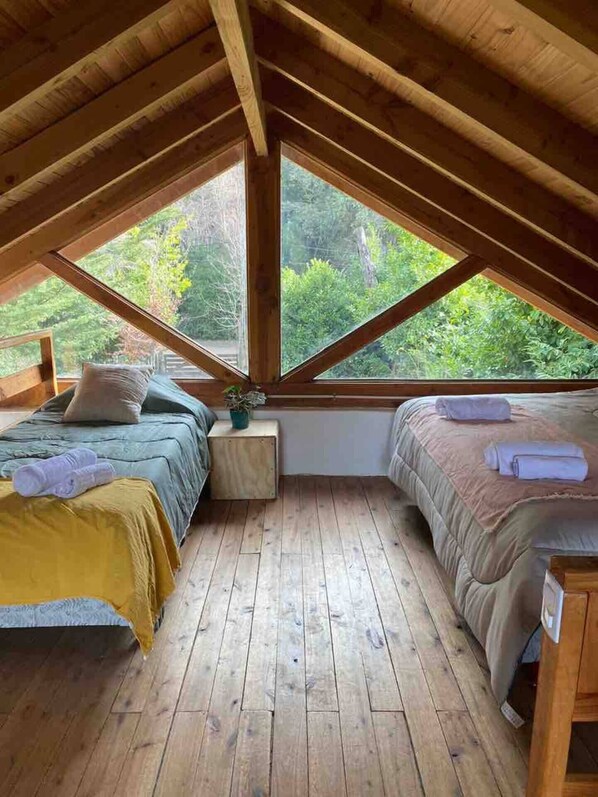 Cuenta con una cocina comedor, un baño y cuarto para dos personas en planta baja, y un cuarto grande en planta alta con cuatro camas mas, a distribuir según la elección del huesped