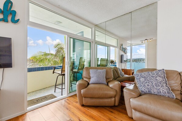 Excellent stay - loved having two condos just across the hall from each other. Reserved parking was a plus. Beautiful views of Mission Bay and a 10 minute walk to Mission Beach. Kitchens were well equipped for a rental. Big living areas allowed us to spread out and relax after a day of surfing or hanging out at the beach. Good restaurants nearby and easy access to the rest of San Diego. Was definitely a hit with our extended family.